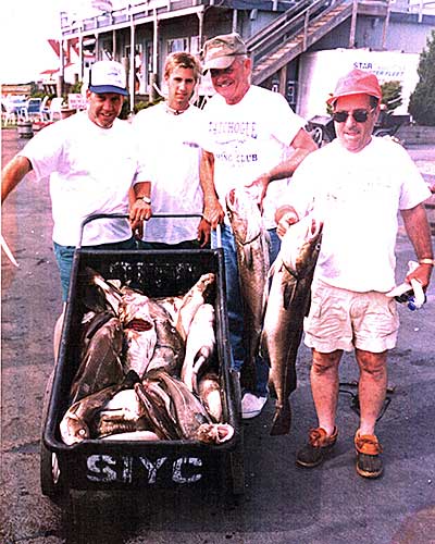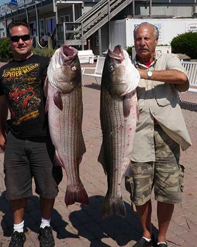 Sharking is very often combined with Striped Bass fishing. The Striper grounds are right on the way offshore for the Sharks. That way we always have table fare for your trip home. No matter when you come, Sharking is exciting offshore adventure.