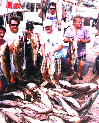 In July, the Windy heads for Coxe's Ledge and some the best Cod Fishing on the east coast. These Cod average larger in size than spring run fish. With fish in the 30 pound class common. Tee shirt weather for Cod Fishing — no other place but Montauk has it — and the Windy is your boat to do it on.