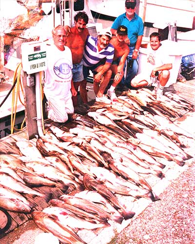 I lump Sea Bass and Porgies together because both have similar methods of fishing, live on the same pieces of bottom and we catch them both at the same time. For the past several years the Sea Bass & Porgy Fishing has been out of this world, with the fishing being just unbelievable. Many days saw well over 100 fish. Both Sea Bass & Porgies go home in coolers of anglers fishing aboard the Windy.