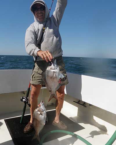 Most often Sea Bass& Porgies are combined with Striped Bass. First we'll catch you your limit of Stripers then break it up and catch a couple of bushels of Sea Bass & Porgies.