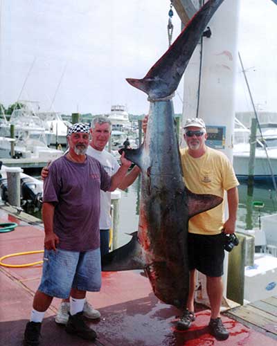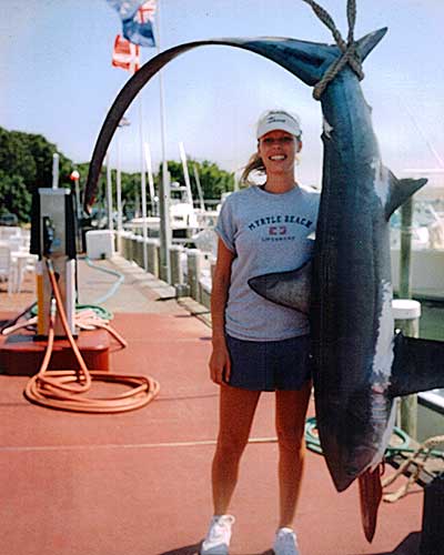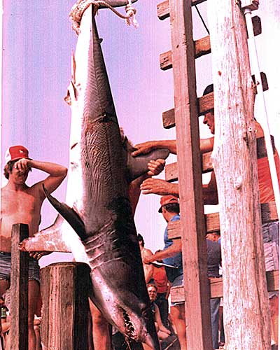 Blues will average 150 pounds, the Makos about the same. Threshers are big, the hardest fighter, and are usually 250 pounds or more. June is the time for Shark Tournaments and the big bucks that come along with them. If you have any interest in doing a Shark Tournament call me for details.