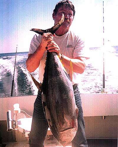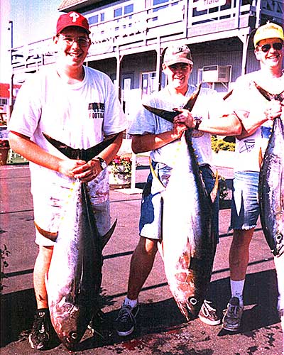 The Albacore will average 35 to 40 pounds and the Yellowfins average between 50 and 70 pounds. The best fish was a 105 pounder caught trolling about 45 miles southeast of the point. This red hot action lasted well into September and actually some of the best days of the season were the middle two weeks for those who choose to make the run far offshore. Remember: on the Windy all the Tuna you catch belong to you with the exception of Giant Bluefins and Bigeye.