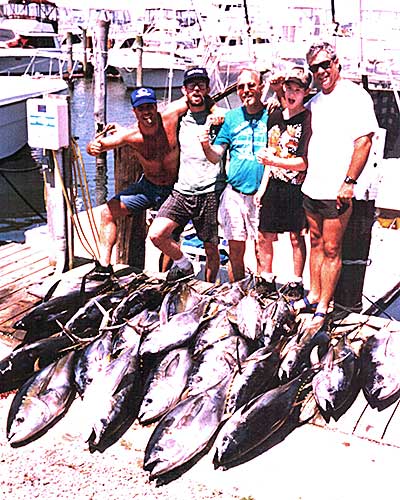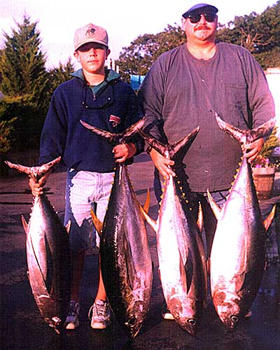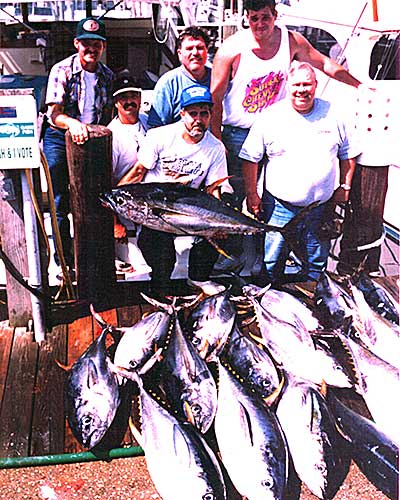 Tuna Fishing starts on the Windy about the second week in July and runs right through the end of September. We usually start out trolling south of Montauk Point targeting Yellowfin and Longfin Albacore. The past season was terrific right from the get-go. With many catches in double figures. The Windy was once again the high liner among Montauk charter boats with well over 100 Albacore and Yellowfins boated. Next season should be even better.